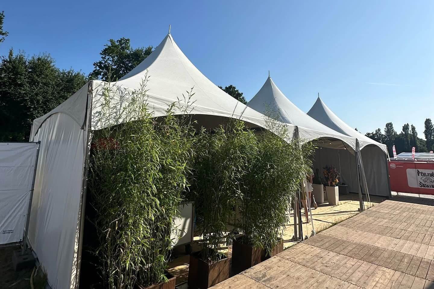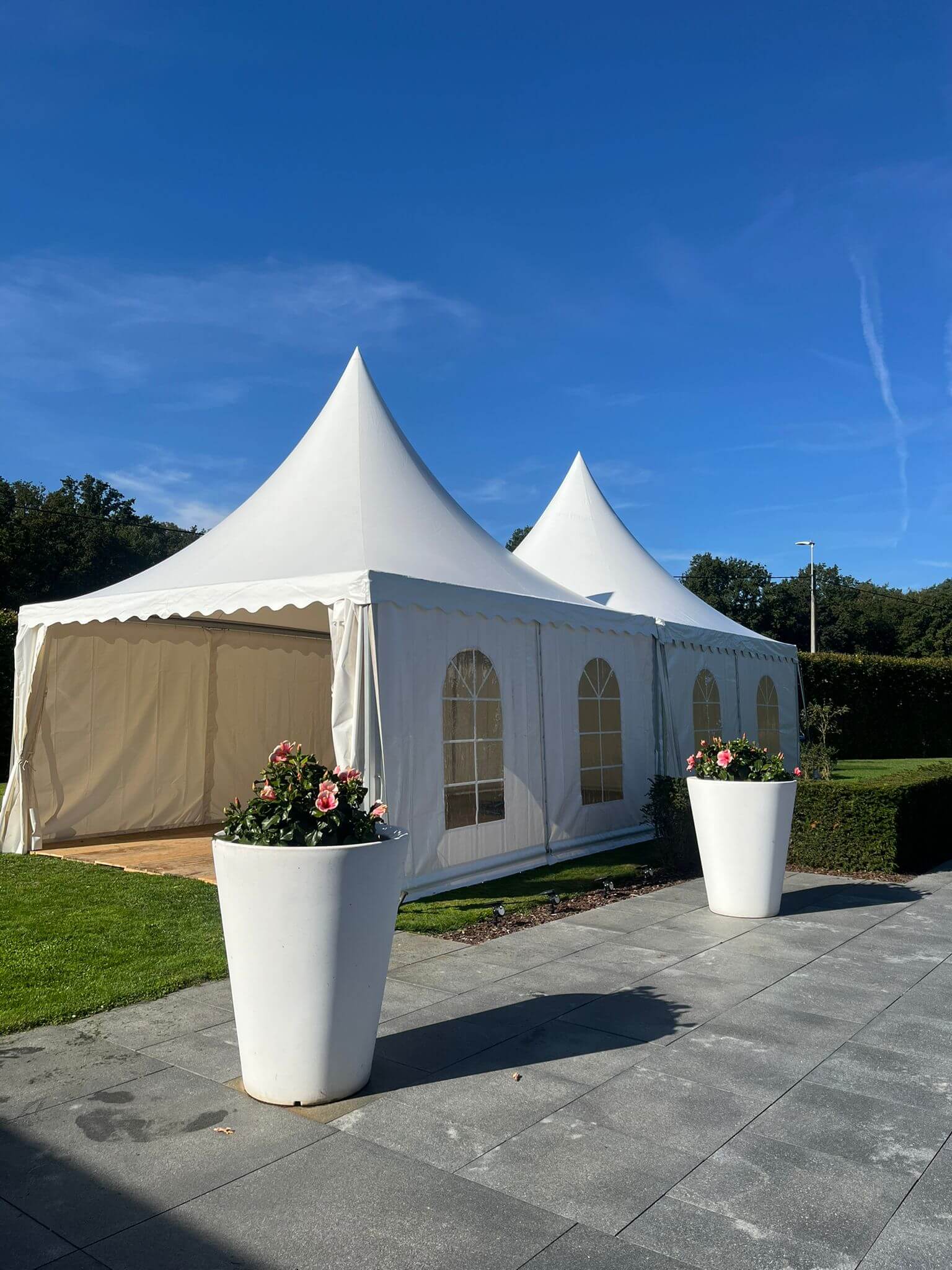 Onze pagode tent straalt klasse en professionaliteit uit, ideaal voor zowel privéfeesten als bedrijfsevents. Dankzij het kenmerkende puntdak en de stevige constructie bieden onze tenten niet alleen bescherming, maar ook een stijlvolle uitstraling die indruk maakt op elke locatie.